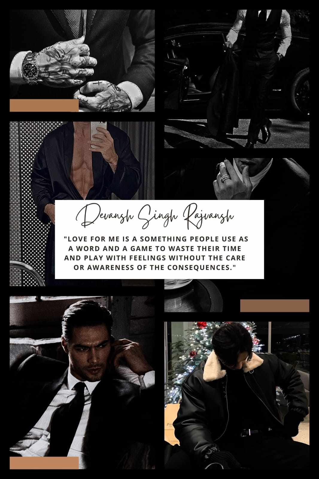 "Love for me is a something people use as a word and a game to waste their time and play with feelings without the care or awareness of the consequences. whereas it's actually something no one can explain but only feel and respect. Is something as pure as Devotion. But that doesn't exist anymore. "